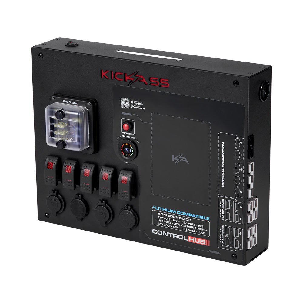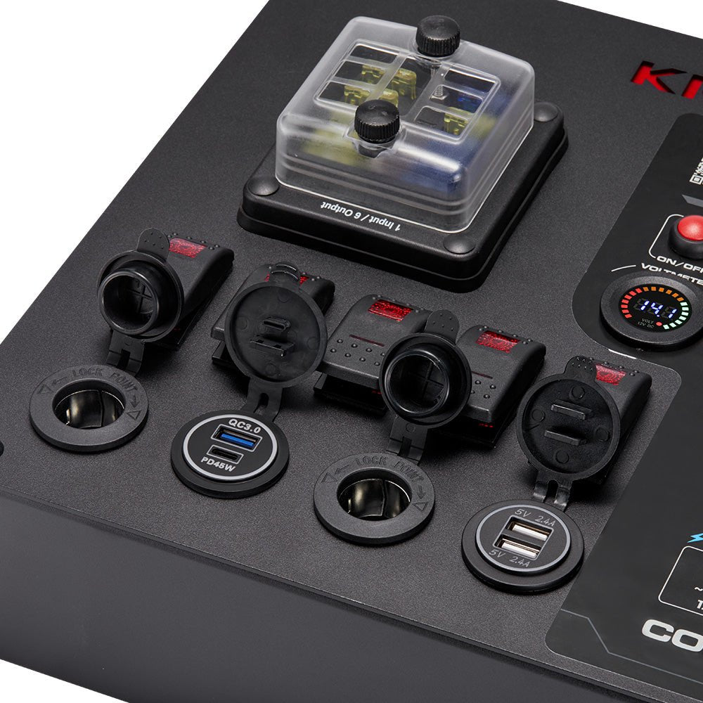 Designed by KickAss engineers with all the essentials for your 12V setup, including accessory switches, USB ports, and Cig sockets. Ideal for canopies, vans, or motorhomes - fully customisable to suit your needs.