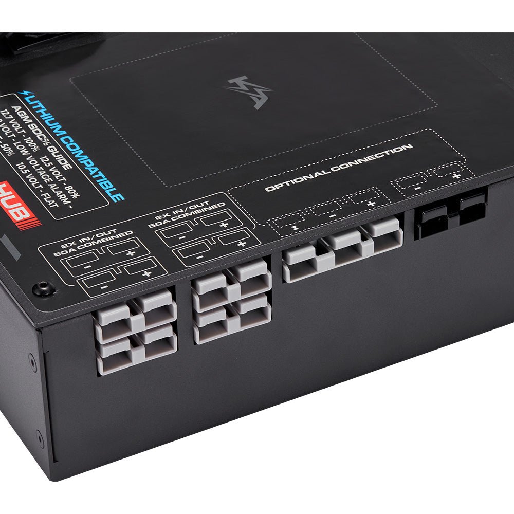 This panel offers more connections than any other on the market: 4 x flush mount Anderson Style connectors, 2 x Cig sockets, 2 x 4.8A USB ports, 1 x QC3.0 USB, and 1 x USB-C port - power for the whole family.