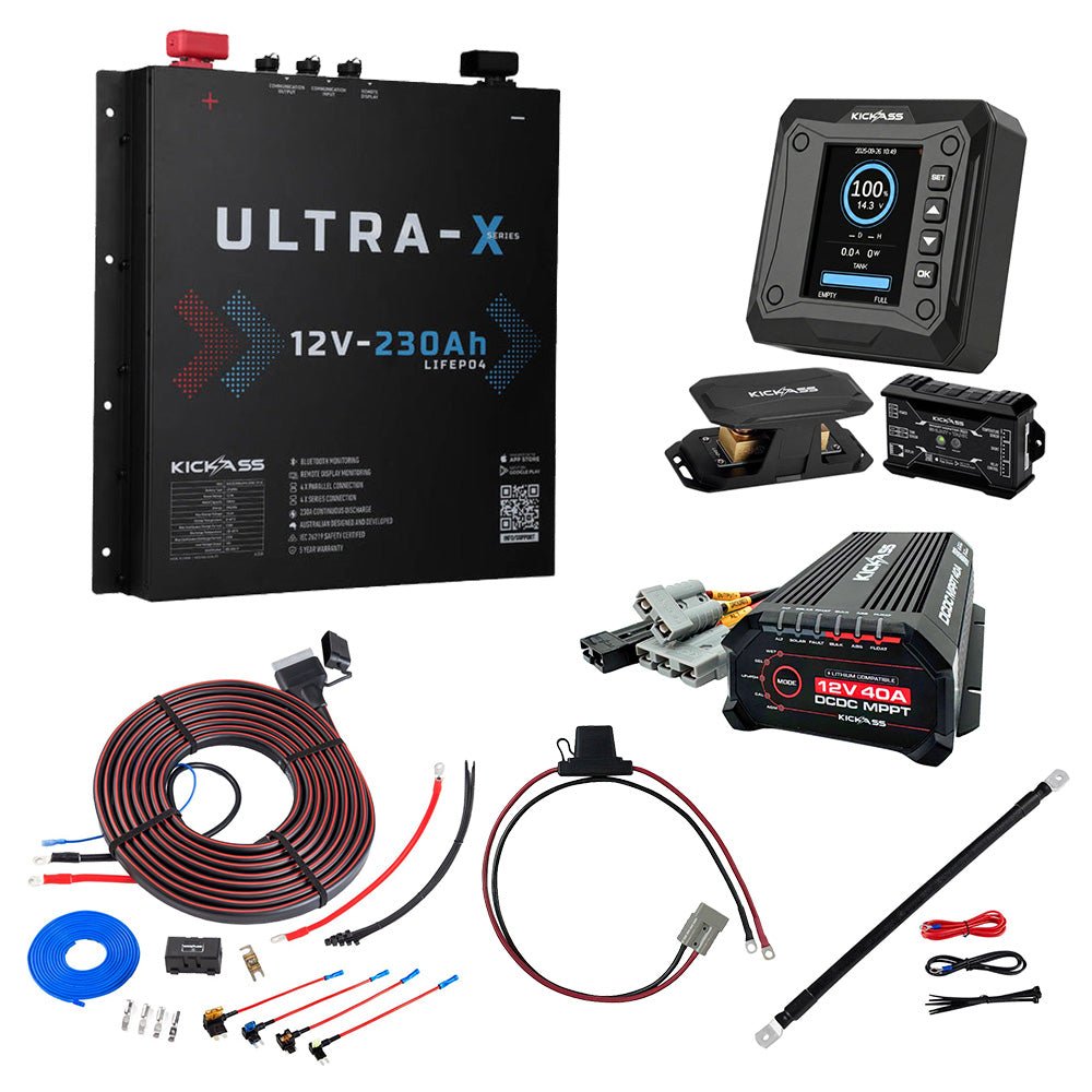 KickAss 230Ah Lithium Slimline Complete Dual Battery Kit with 40A DCDC Charger, Smart Shunt and Wiring