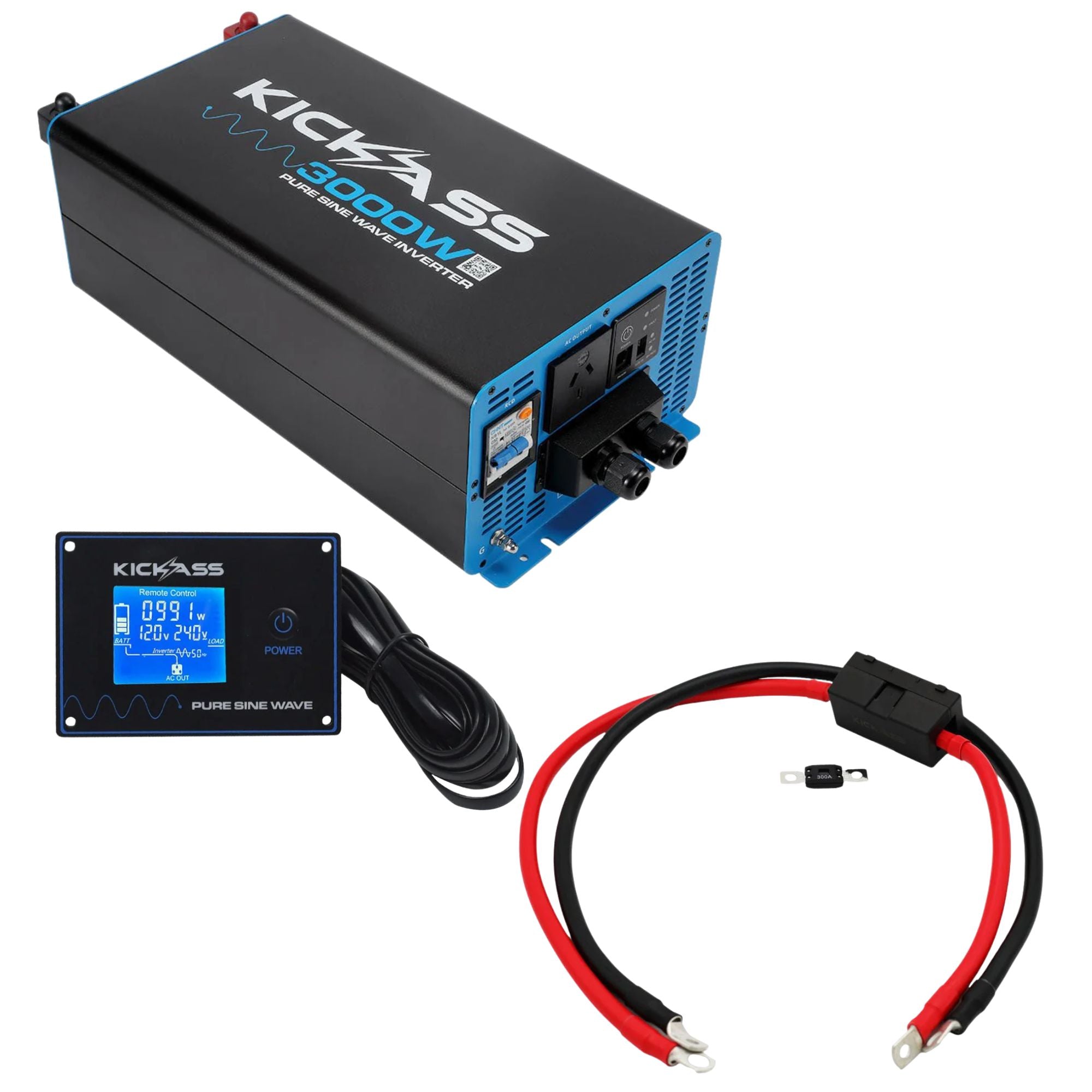 KickAss 3000W Pure Sine Wave Inverter Bundle with Remote Display Panel & Premium Wiring Kit