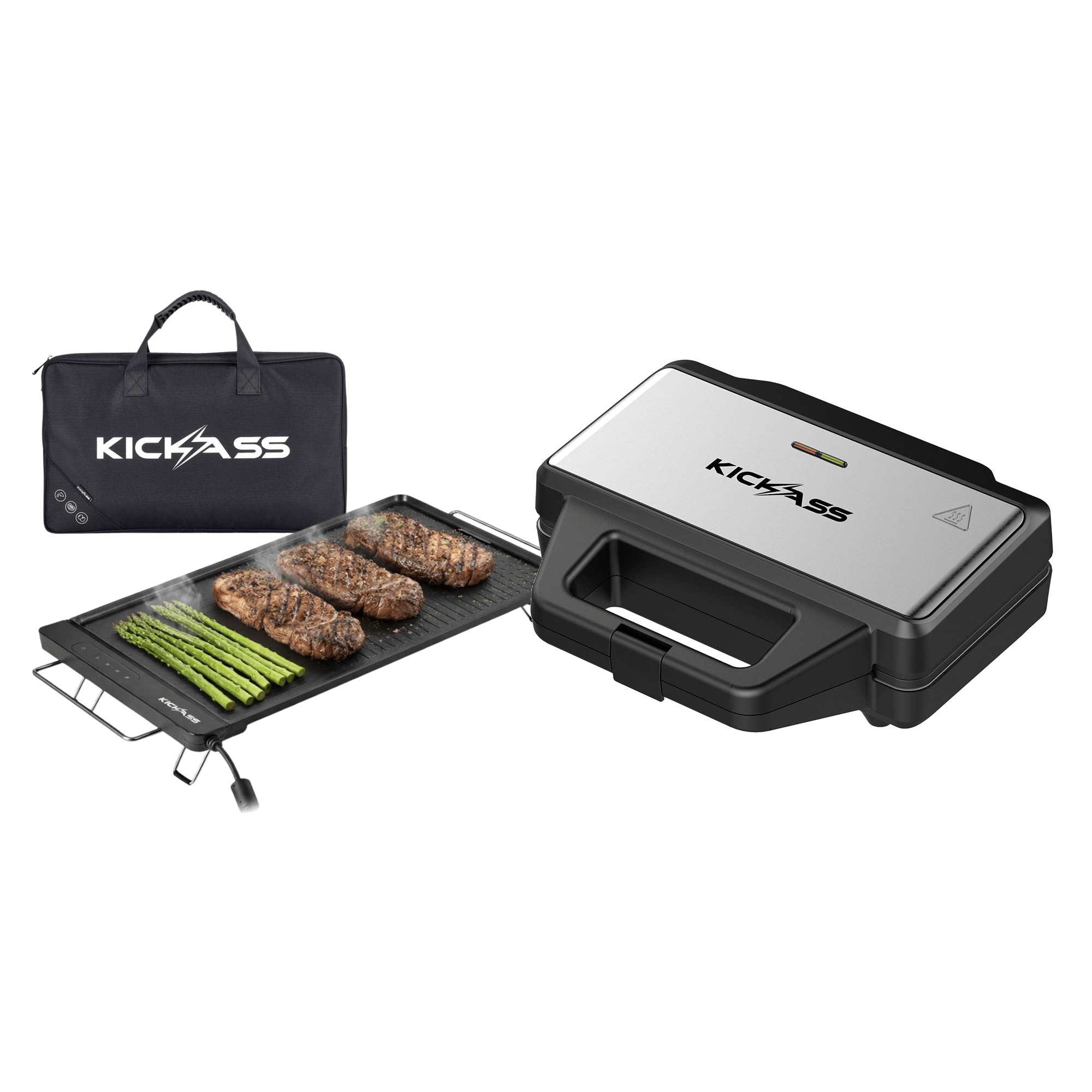 KickAss 50CM Portable Electric BBQ- 1400W & All-In-One Jaffle, Waffle, Sandwich & Grill Press Bundle