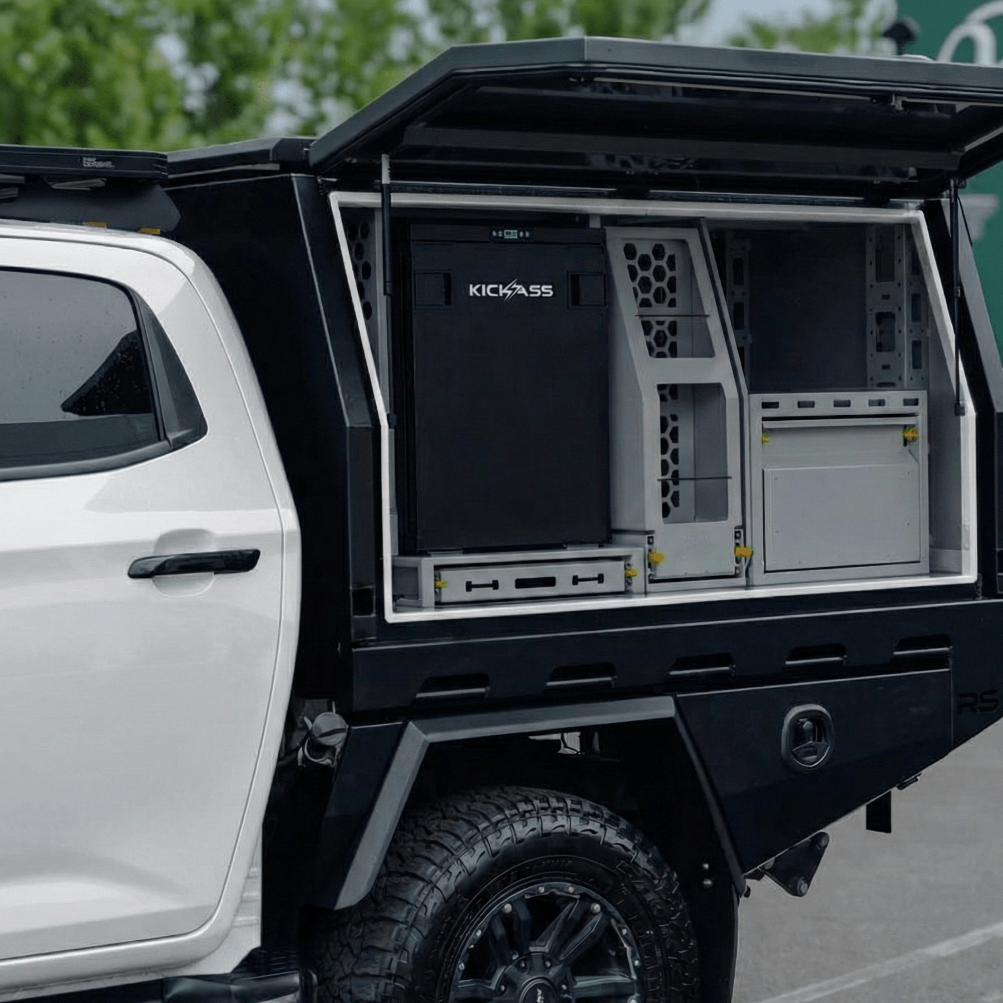 Built for serious off-grid adventures, the KickAss 80L Upright Fridge and Freezer combines huge storage capacity with rugged durability and smart design. Its powerful SECOP compressor delivers icy performance while drawing minimal power, and the dual-opening door allows you to access your fridge from either side. It’s the ultimate companion for life on the road.