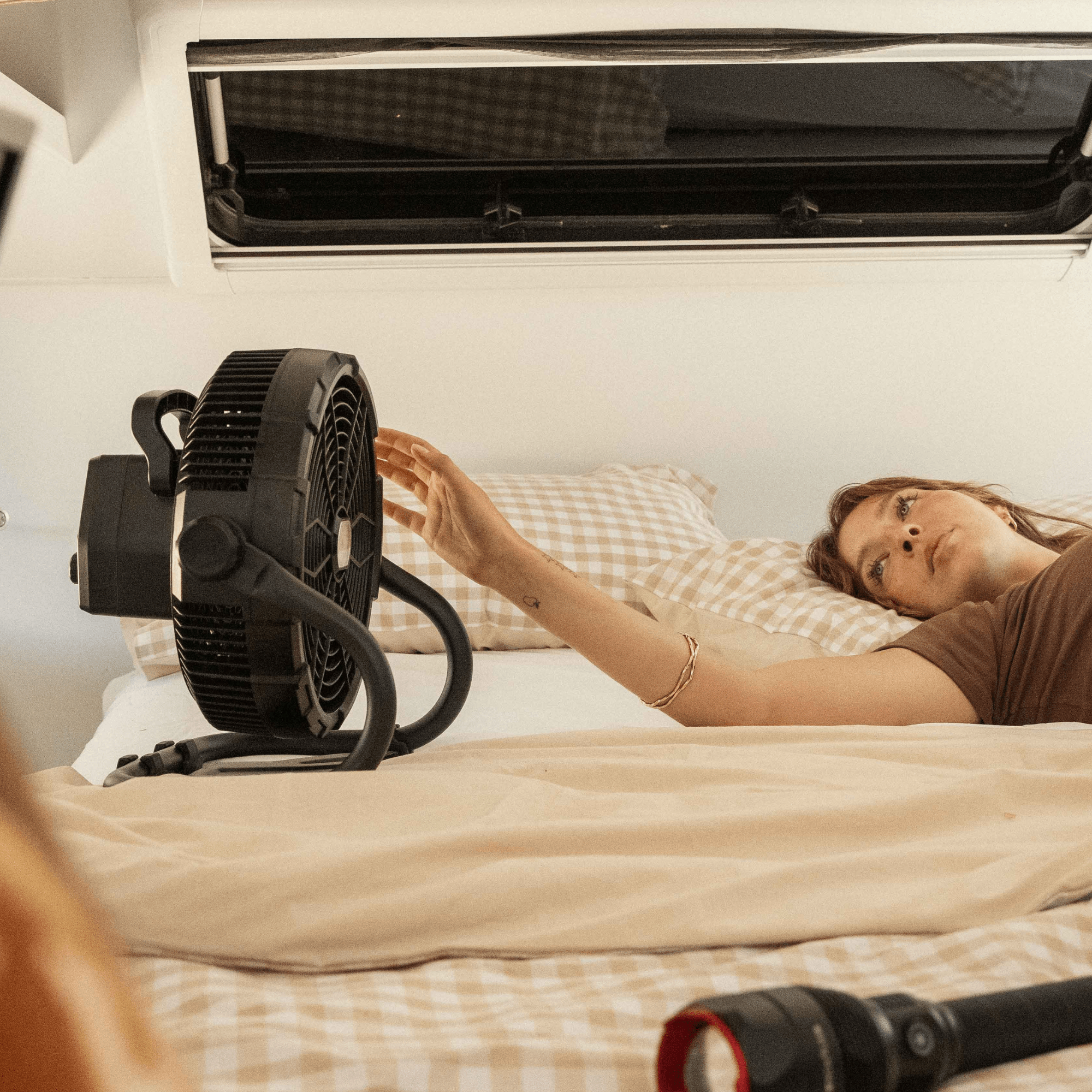 Manually tilt the fan to aim the breeze exactly where you want it. From your tent to the camp kitchen or sleeping area, you can direct airflow for maximum comfort.
