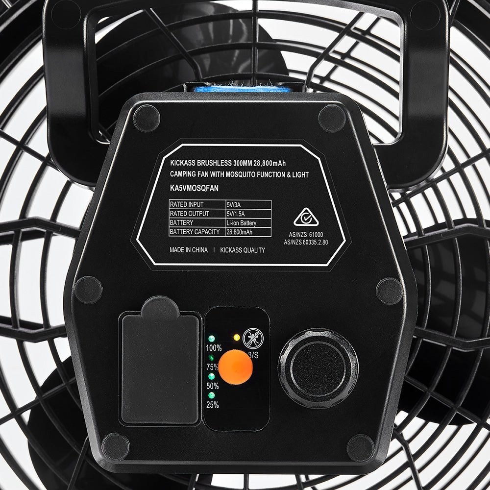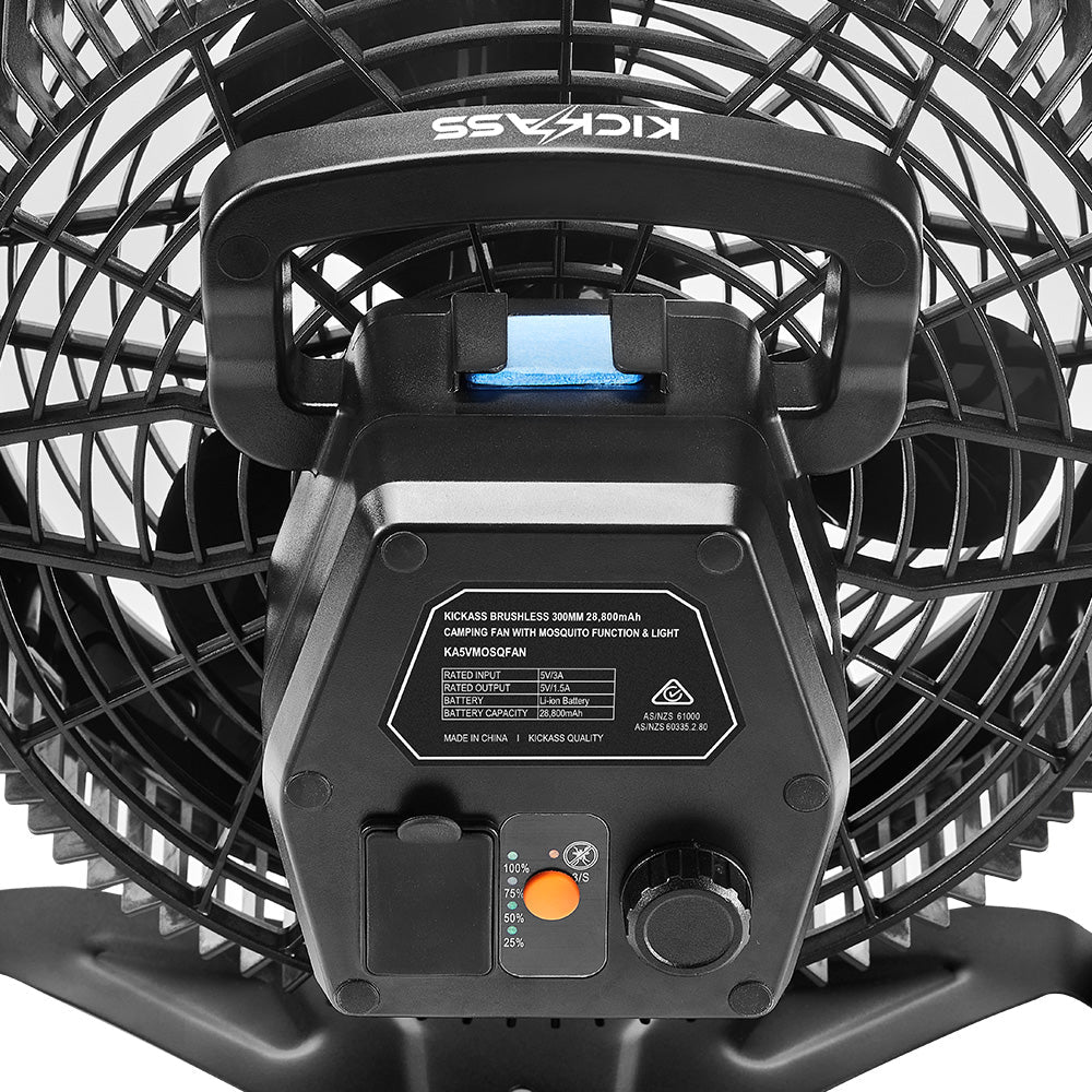KickAss Brushless 300mm 28800mAh Camping Fan with Mosquito Function & light