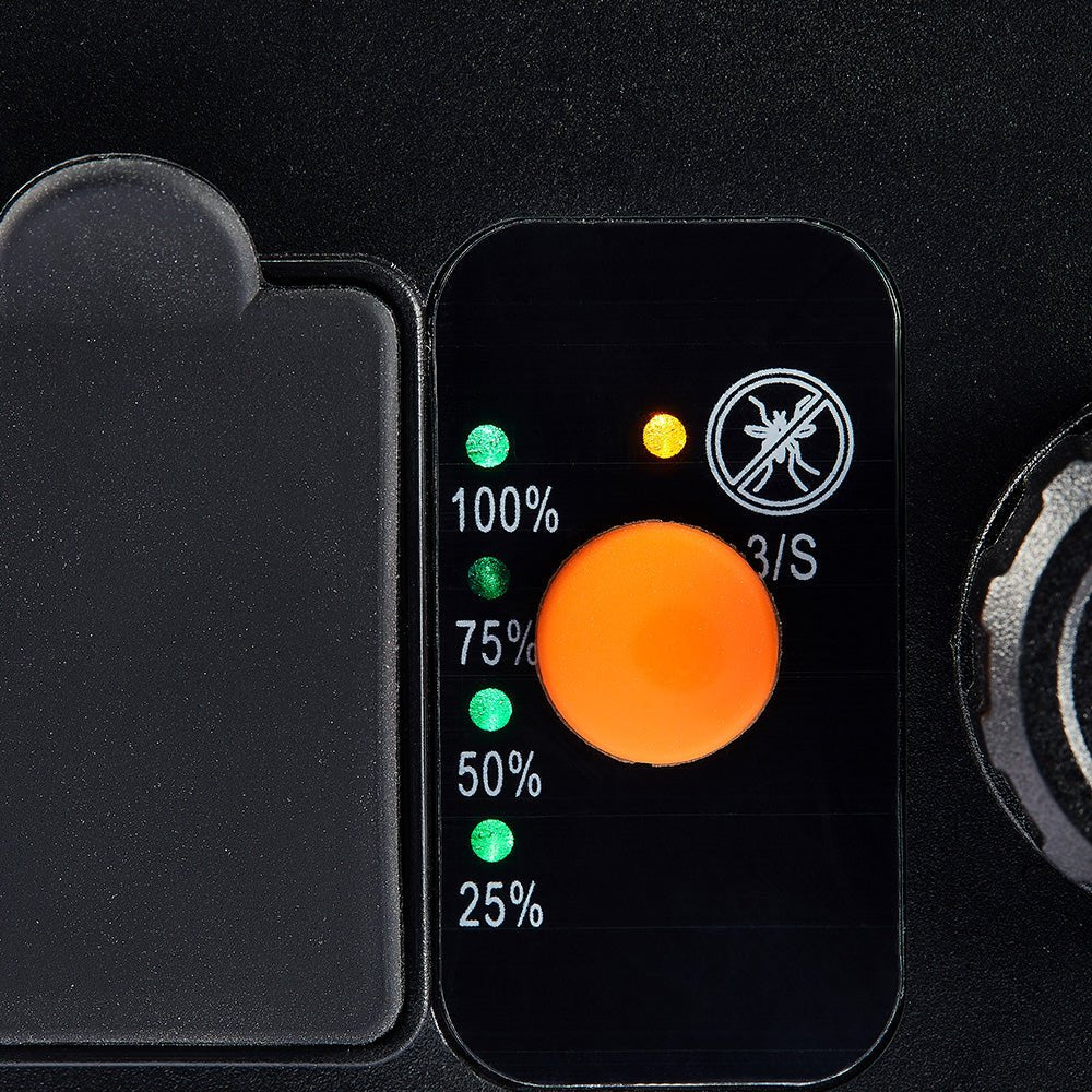 Special features | 360-degree manual tilt function Green light indicates battery power percentage Orange light indicates PTC heating the repellent tablet |