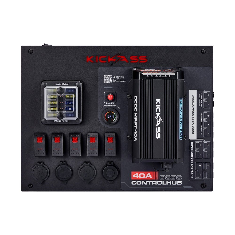 | KickAss 12V Control Hub / Panel with Smart 40A DCDC Charger + Integrated Bluetooth |