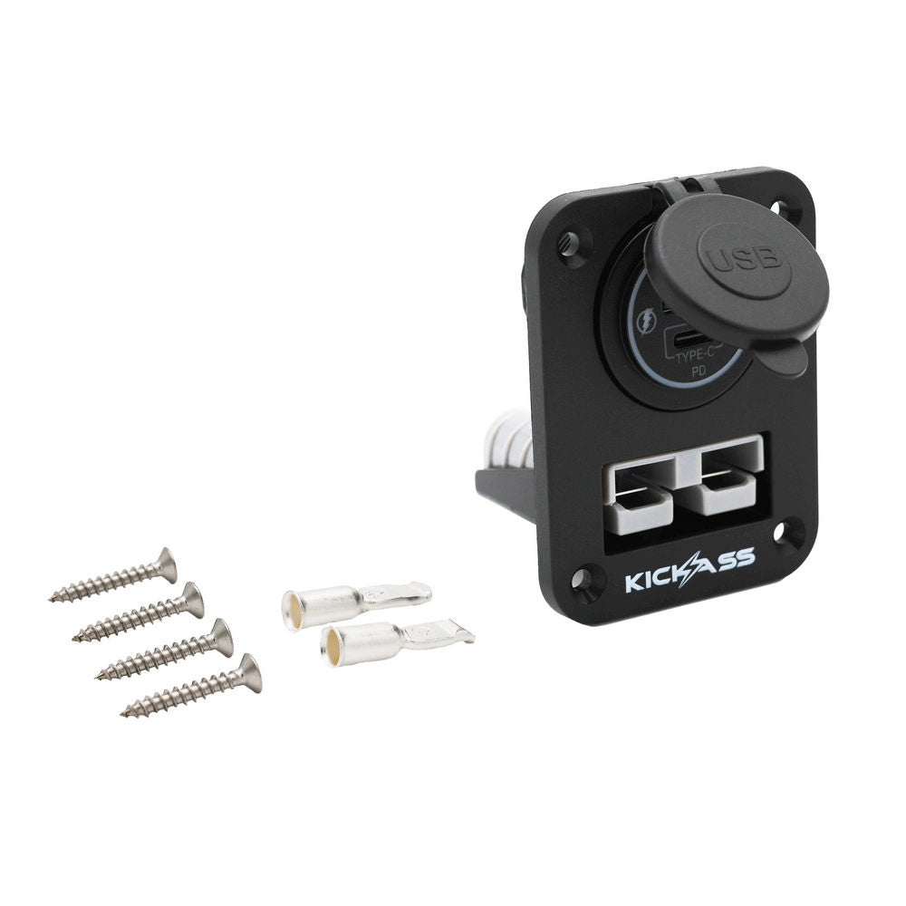 KickAss Double Flush Mount Housing - 50A Anderson Style Plug (USB A+C)