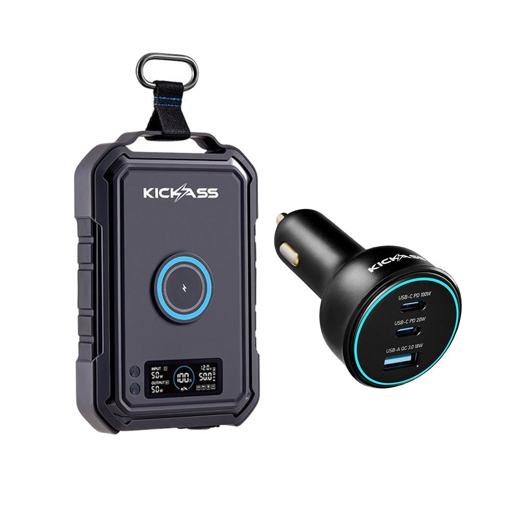 KickAss KickCharge 150Wh Portable Power Pack + 100W Car Charger Bundle