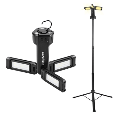 The KickAss Rechargeable Tripod Camping Light delivers powerful, versatile lighting wherever you need it – whether you’re setting up camp, working after dark, or lighting up the backyard. With a massive 4500 lumens of brightness and adjustable 360° coverage, this rechargeable light is built to handle tough Aussie conditions.