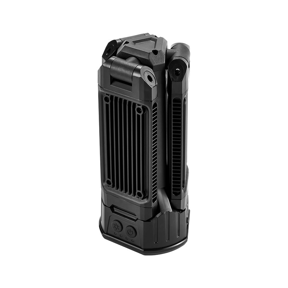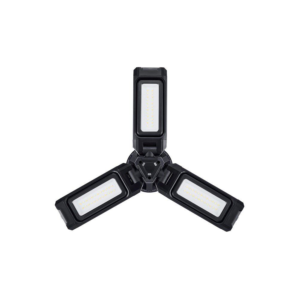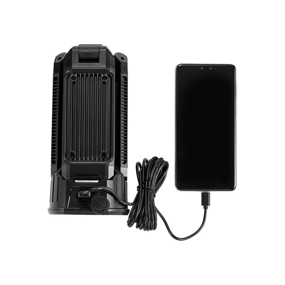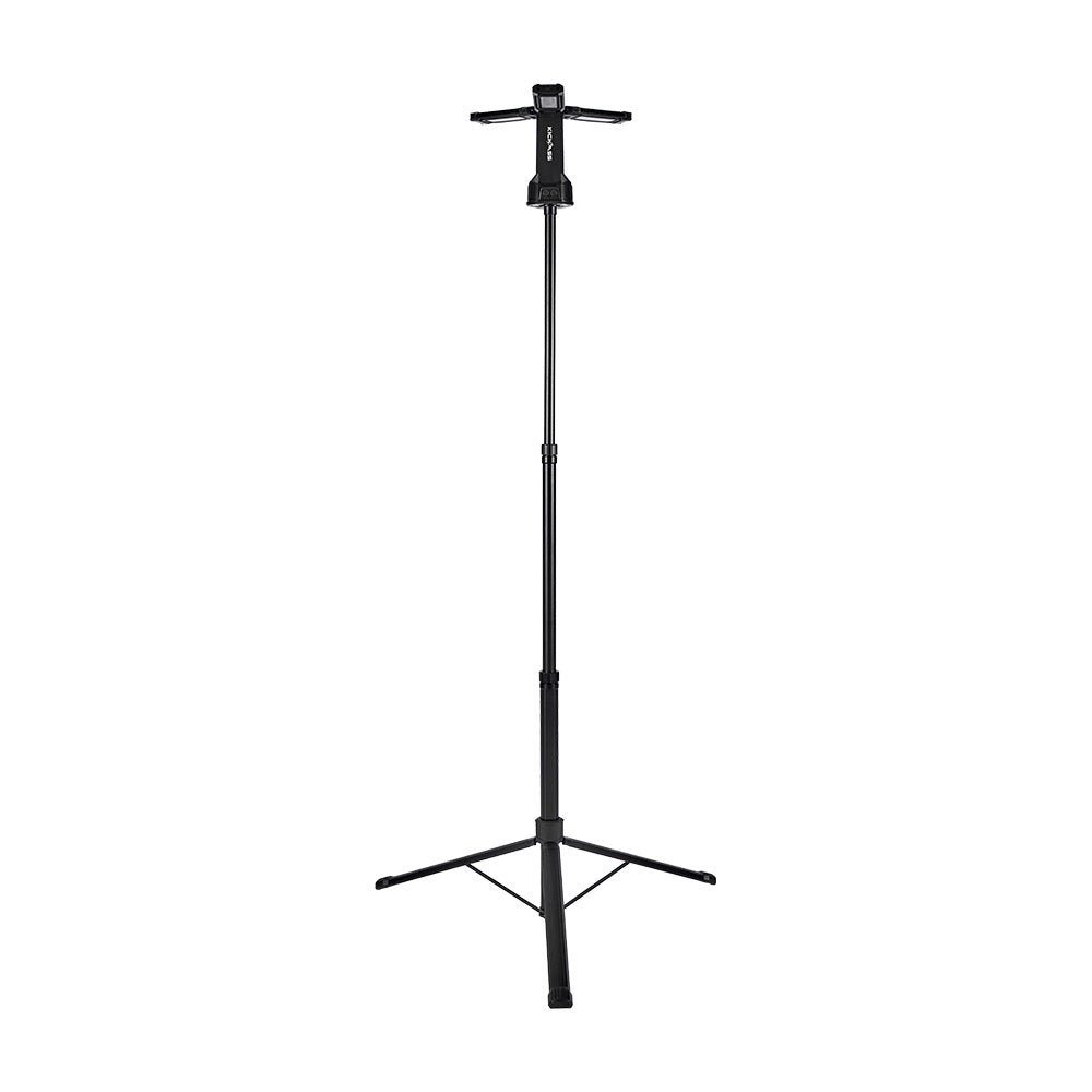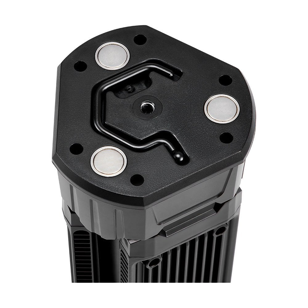Use the tripod for stable ground placement, attach it to metal surfaces using the strong magnetic base, or hang it overhead via the integrated hook – ideal for awnings, canopies and work areas.