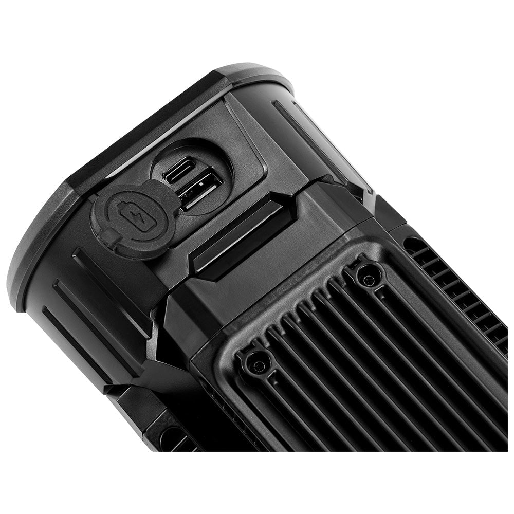 The integrated USB-C output allows you to charge phones and small devices directly from the light’s battery – perfect for emergency top-ups when you’re away from mains power.